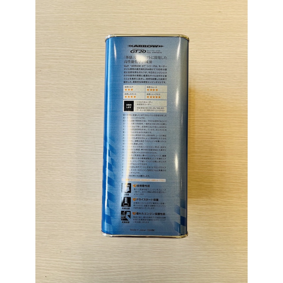 日本海灣 GULF ARROW GT20 0W20 PAO+ESTER 原裝進口 全合成酯類PAO機油 鐵罐裝