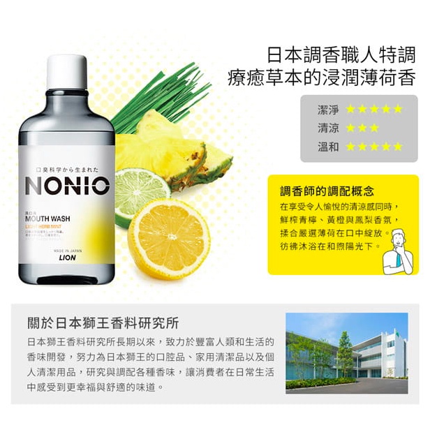 【福吉生活】日本獅王 NONIO 終結口氣 漱口水 浸潤薄荷 600ml 無酒精