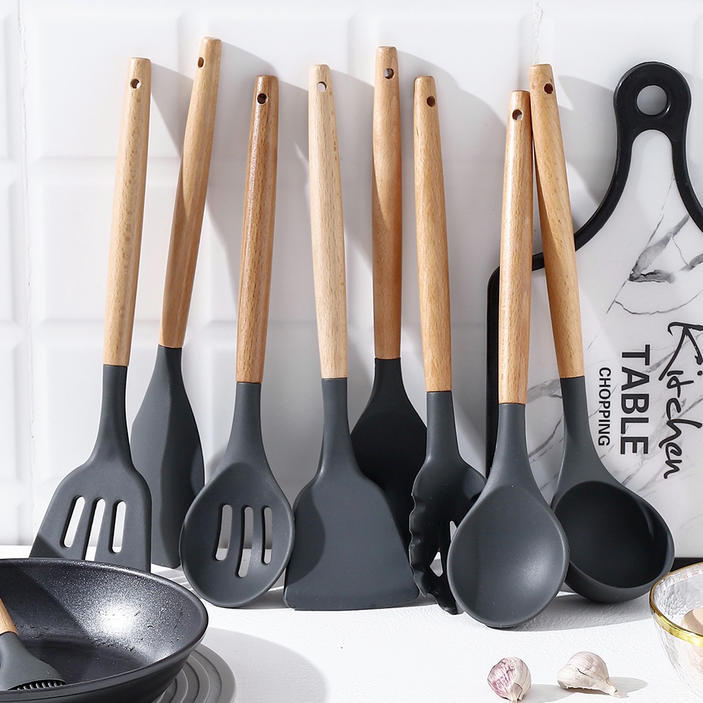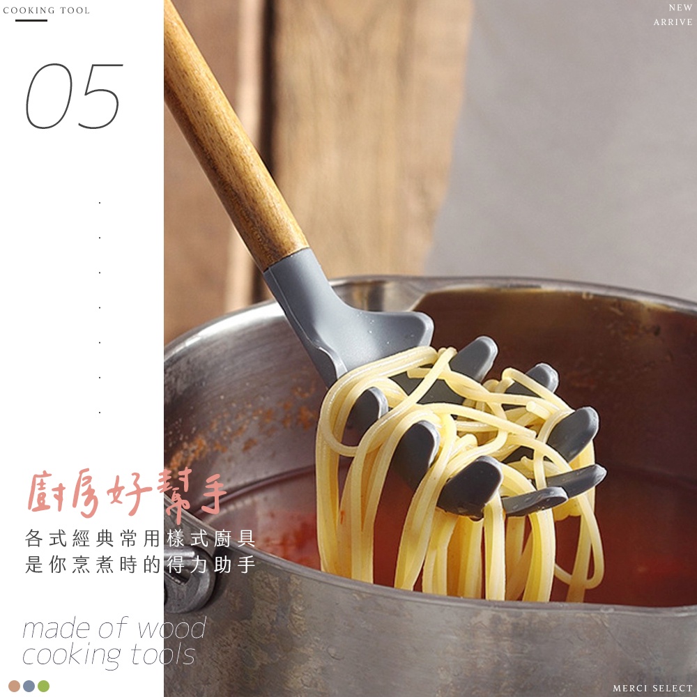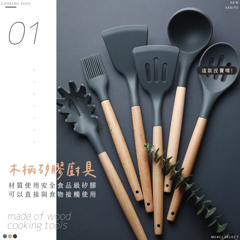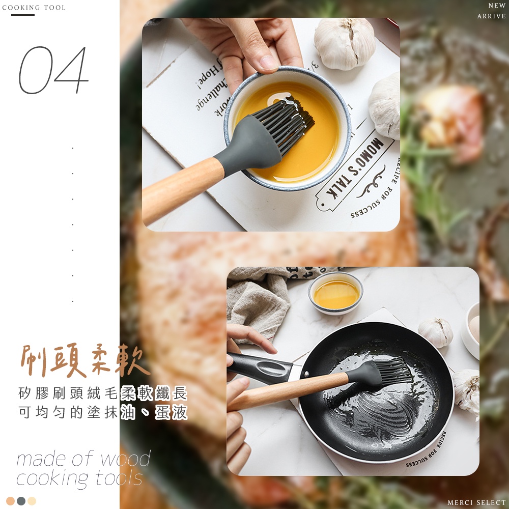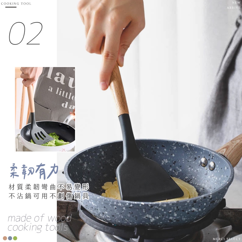 ✿MERCI 附發票✿ 現貨 木柄矽膠廚具 不沾鍋可用 不傷鍋具 食品級 矽膠 湯勺 鍋鏟 油刷 煎鏟 漏鏟 廚房用具