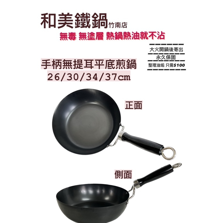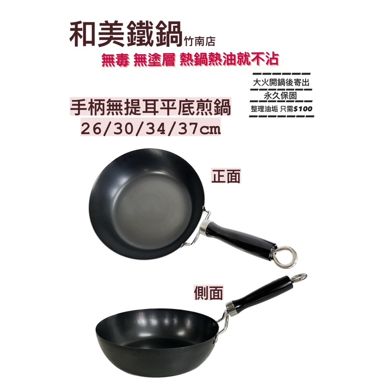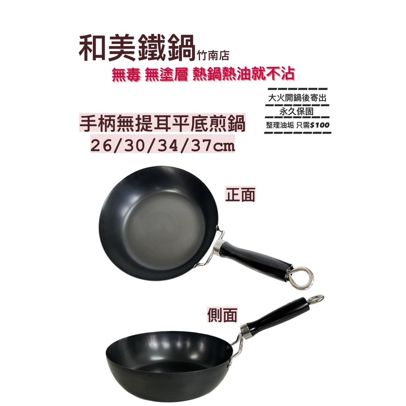 和美無毒鐵鍋,單柄小平底煎炒鍋,電磁爐平面也可用,大火開鍋後寄出。