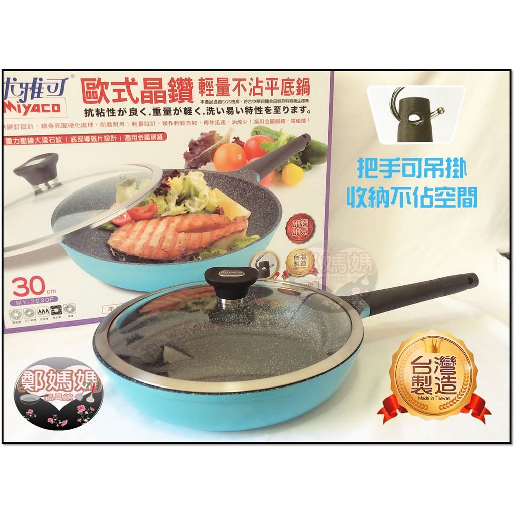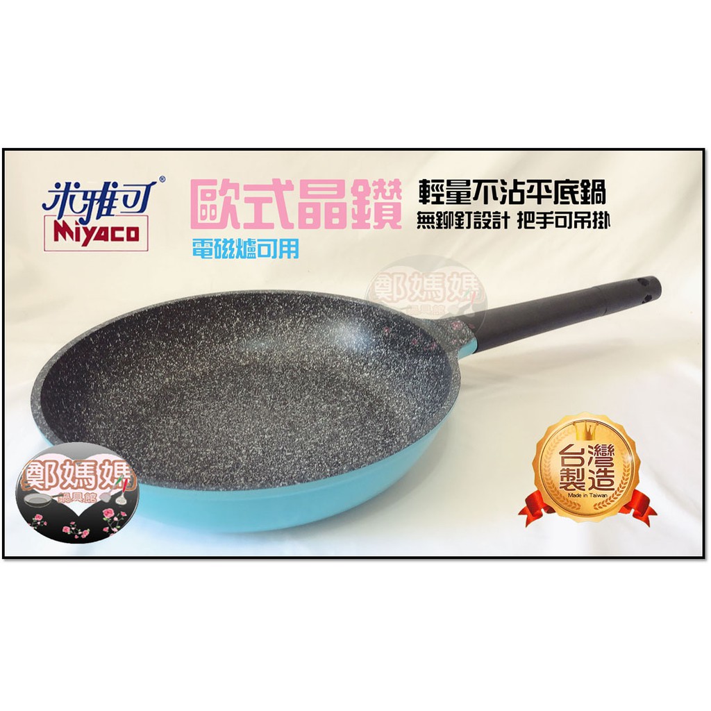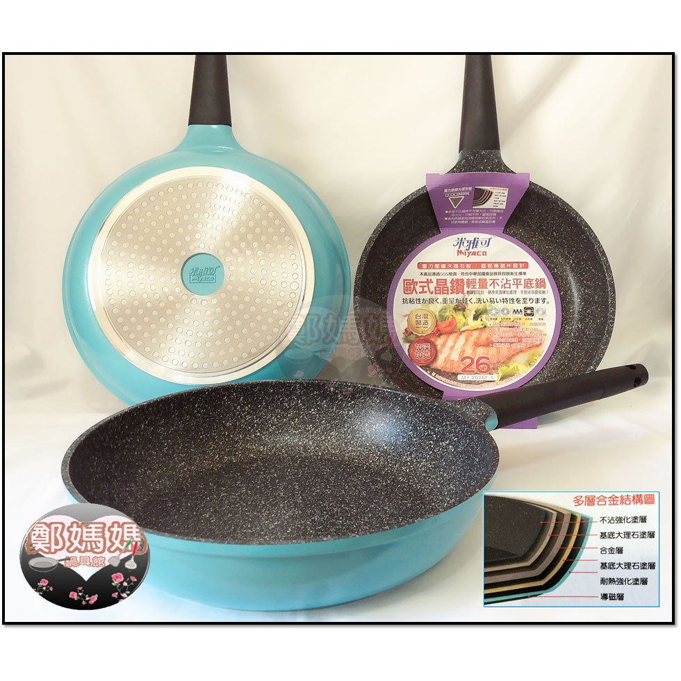 ♥鄭媽媽♥台灣品牌【歐式晶鑽輕量不沾平底鍋】少油煎煮不易起油煙不含PFOA/台灣製造/平煎鍋