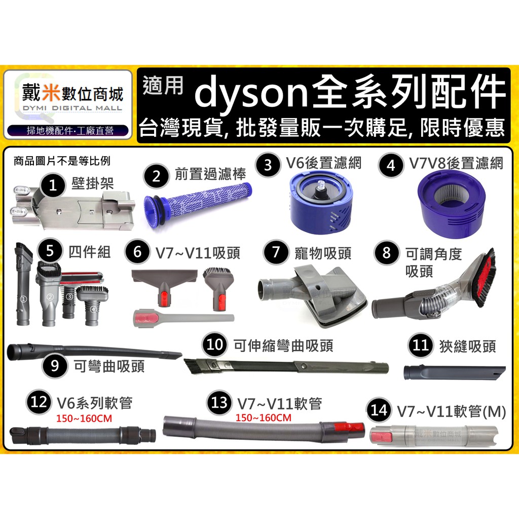 適用 戴森 dyson 吸頭 配件 耗材 濾網 過濾器 軟管 壁掛架 收納袋 過濾棒 後置 轉接 轉換 擴充座 戴米數位