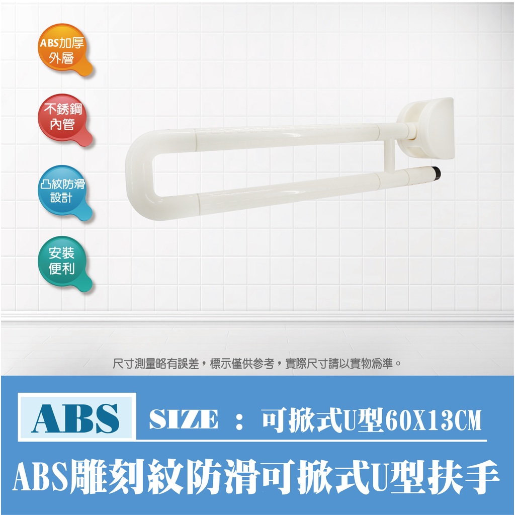 ABS 雕刻紋 U 型 可掀式 扶手 防滑扶手 安全扶手 浴室扶手 60 x 13 CM