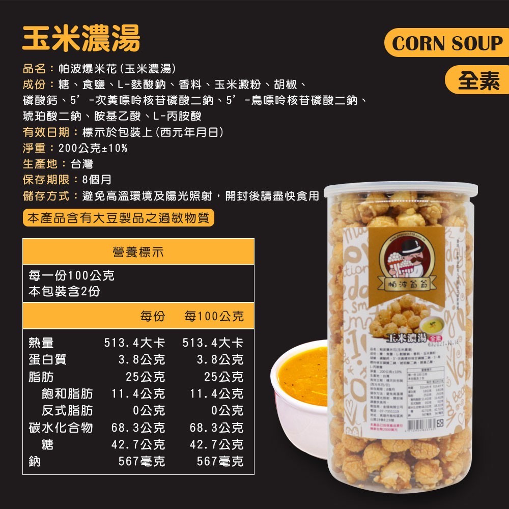 [現貨/快速出貨/免運] 帕波爺爺爆米花 原味 焦糖 巧克力 起司 玉米濃湯 鹽酥雞 珍珠奶茶 黑糖珍珠 爆米花