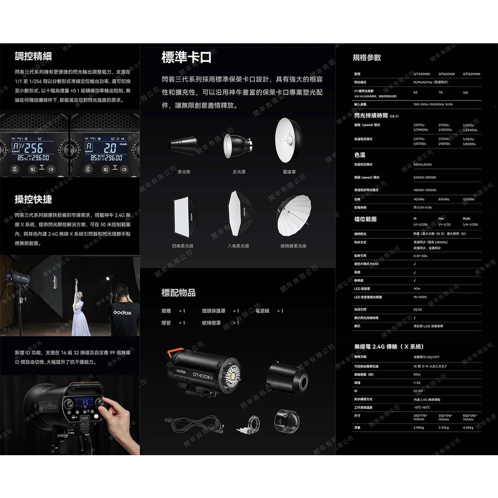 Godox 神牛 QT600IIIM 高速影室閃光燈 閃客 三代 棚燈 攝影燈 保榮卡口 [相機專家] [公司貨]