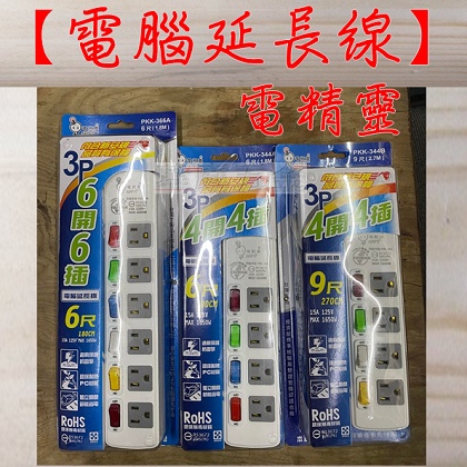 " 瑋庭五金 " 電精靈 電腦延長線 3孔 台灣製 新安規 全新平貼插頭 多種規格 單獨開關 最大1650W
