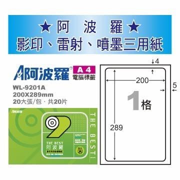 華麗牌 阿波羅 100張入 WL-9601A A4 影印用自黏標籤紙