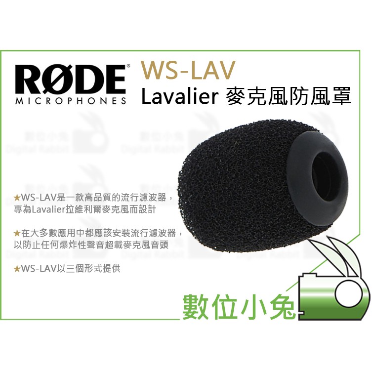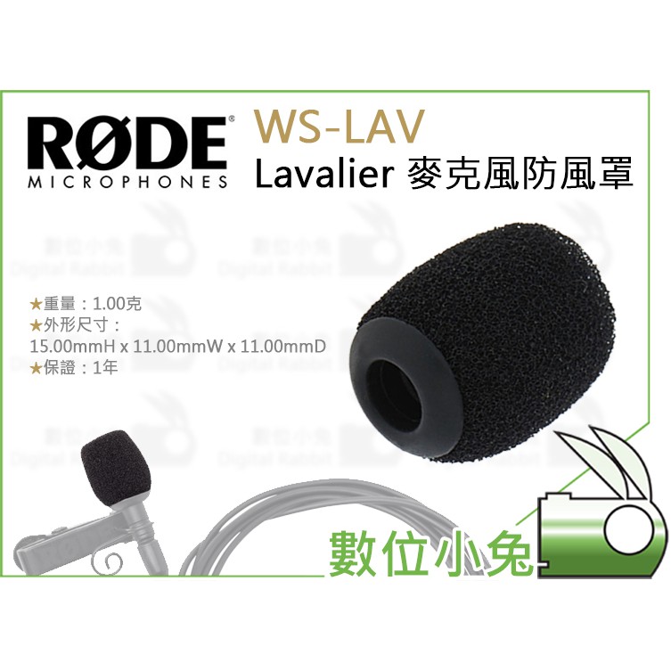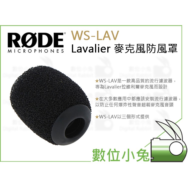 數位小兔【RODE WS-LAV Lavalier 麥克風防風罩】公司貨 防風套 防風棉 領夾式翻領麥克風 收音 錄音