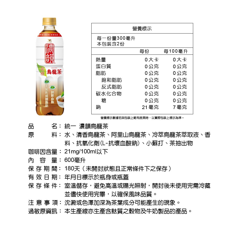濃韻 烏龍茶無糖/日式綠茶無糖 600ml 國家健康標章 免運 廠商直送