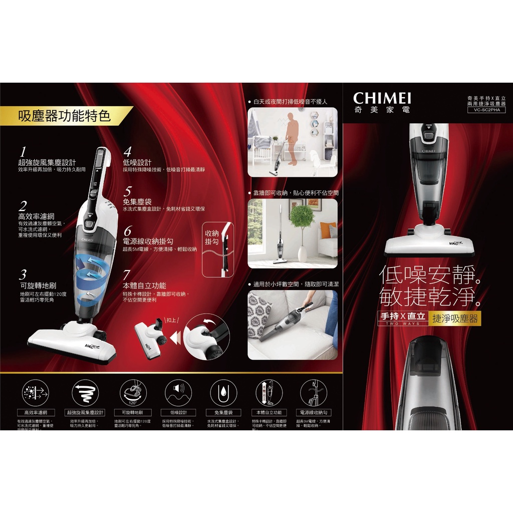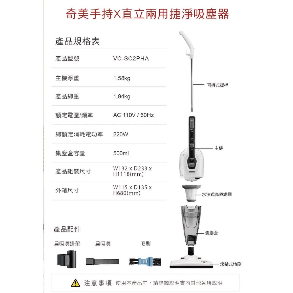 CHIMEI奇美 手持有線直立兩用捷淨吸塵器 VC-SC2PHA 嘉里快遞一筆限購兩台