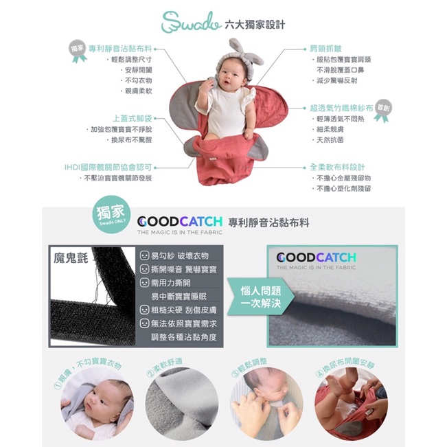 美國Swado 全階段靜音好眠包巾/子宮包巾-紗布竹纖棉款(6種顏色)贈送洗衣網袋