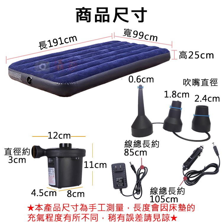 捷華@充氣床+充氣機-單人-寬99 充氣床墊 附兩用充氣泵 INTEX 氣墊床 睡墊 單人床 戶外床墊 野餐露營