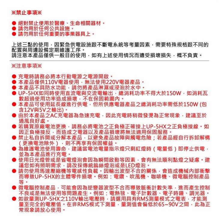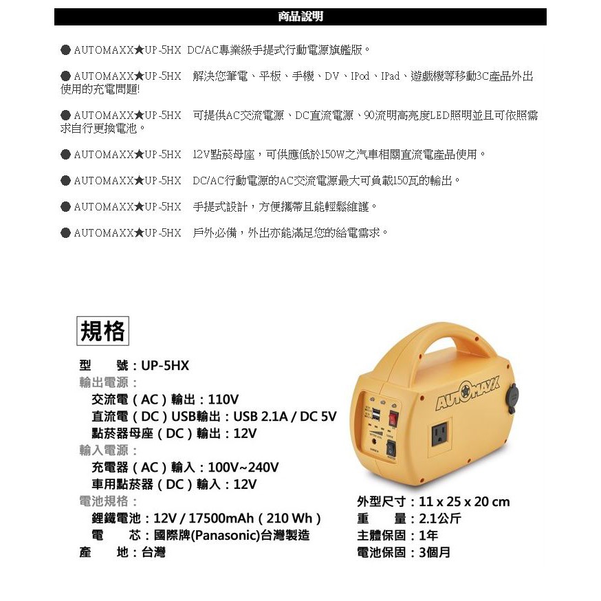 【下殺出清】UP-5HX 鋰電池手提行動式電源轉換器 AutoMaxx