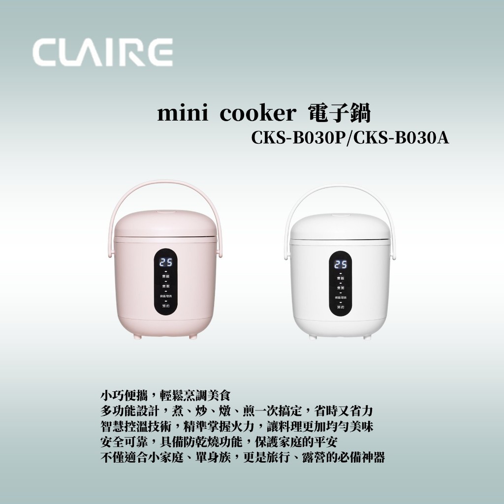 CLAIRE mini cooker 電子鍋 蜜桃粉/北歐白(CKS-B030P/CKS-B030A)