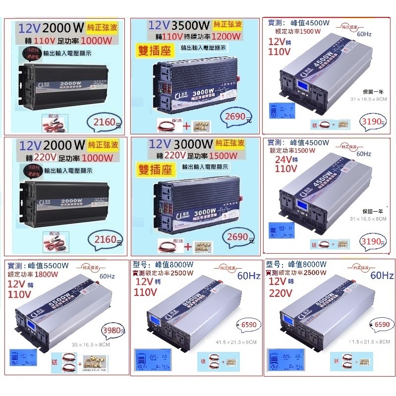 【免運台南店現貨保固發票】8000W逆變器變壓器純正弦波DC24V12V轉AC110V220V接電池用6000W組合