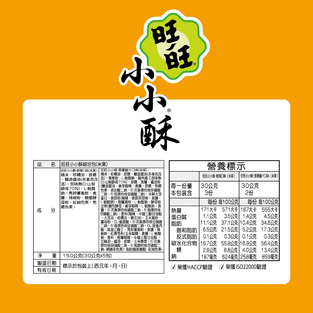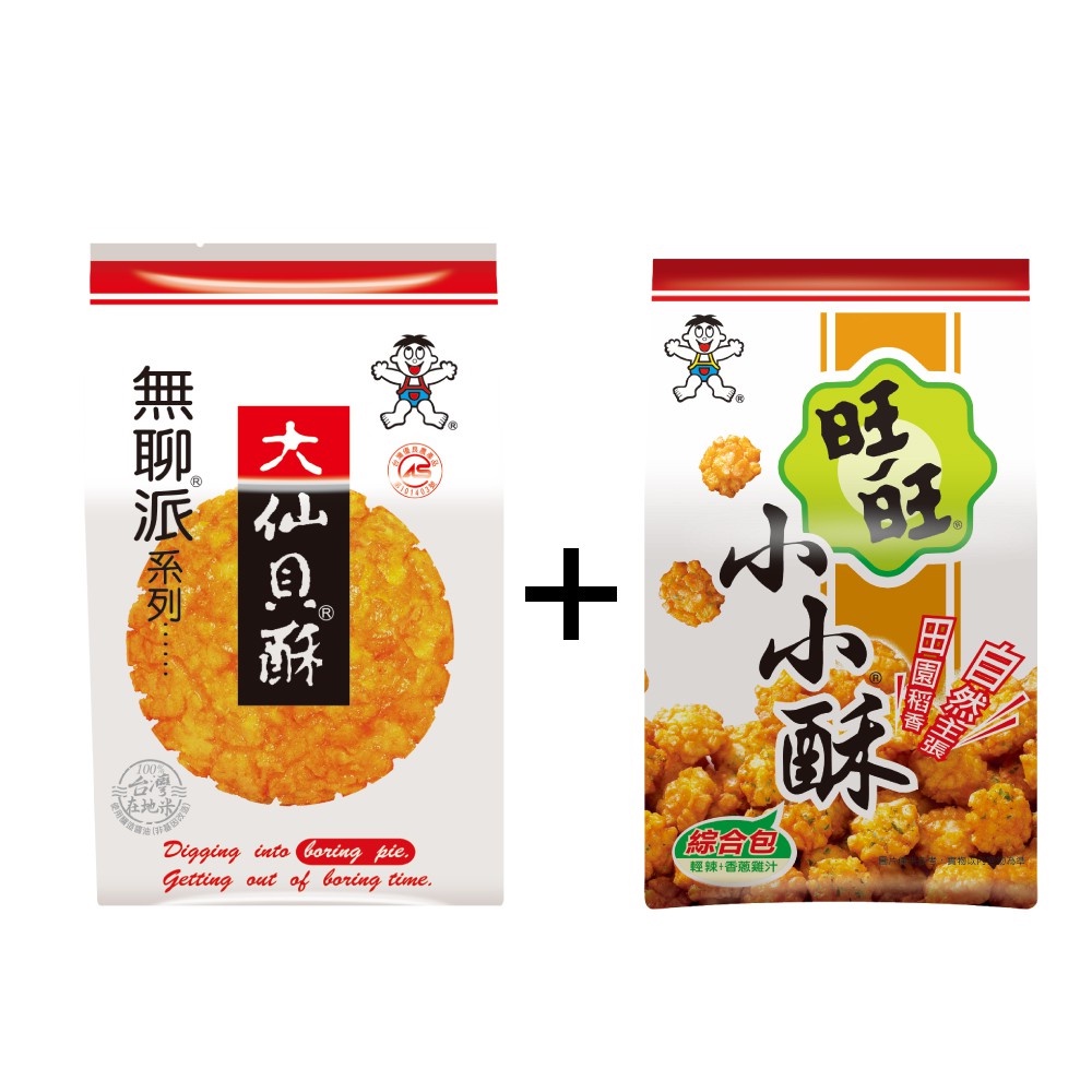 旺旺WANT WANT 小小酥綜合包(輕辣/香蔥雞汁)150g / 無聊派系列大仙貝酥(全素)155g 超夯組合商品