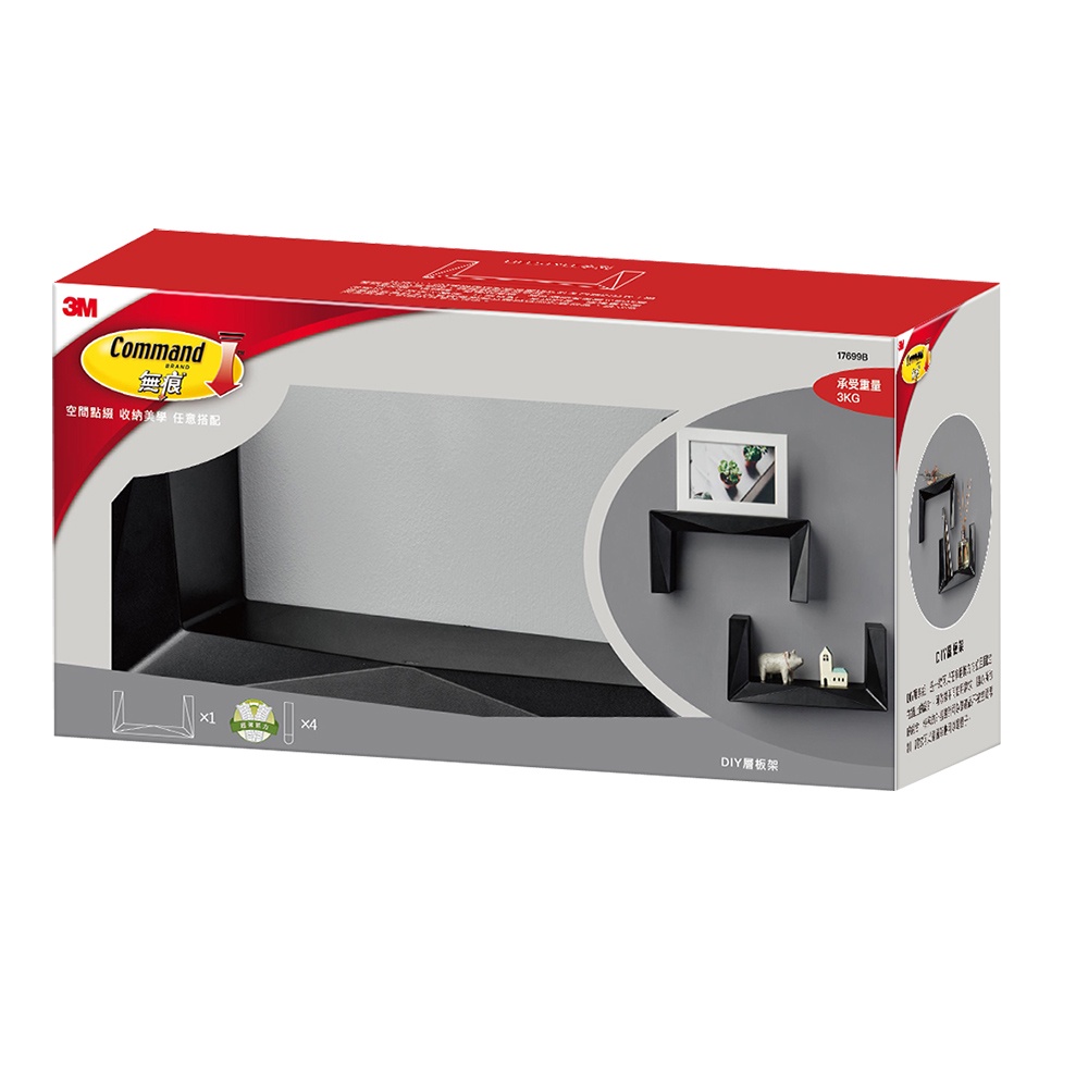 3M 無痕LIFE STYLE DIY層板架|17699 黑色|木板置物架 專用層板 牆壁牆面裝飾置物 收納架