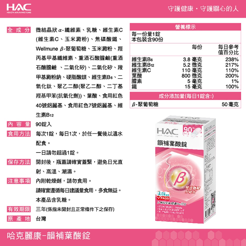 HAC 韻補葉酸錠 (90錠/瓶)【杏一】