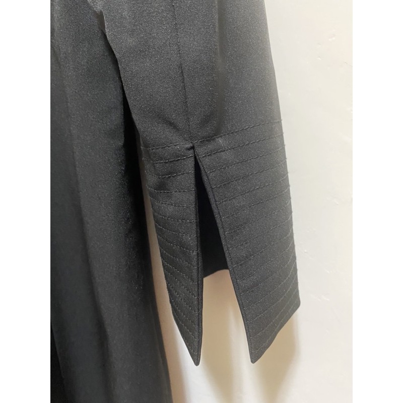 H&M品牌前身HENNES 大衣 西裝外套 翻領 隱藏單排釦 過膝 長版大衣 風衣 長袖 外套女-黑色34 附備用扣
