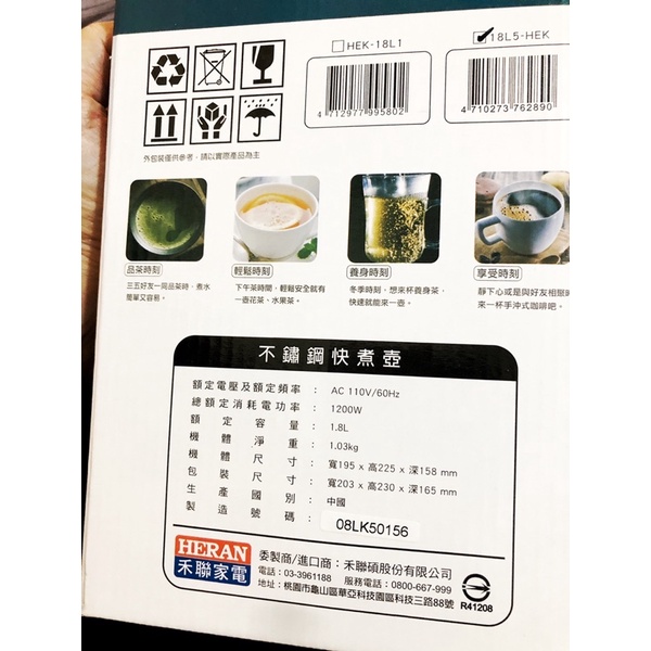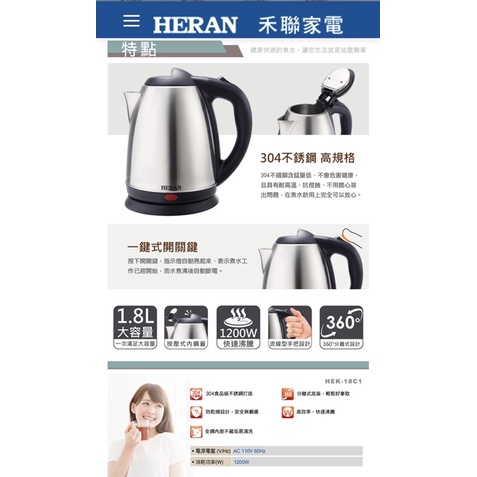HERAN 不銹鋼快煮壺 1.8L 大容量
