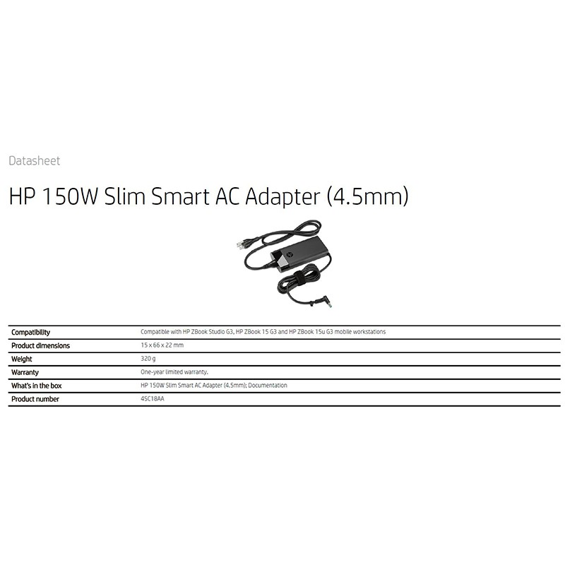 HP 惠普 150W Slim Smart AC Adapter (4.5mm) ZBook 電源供應器 變壓器