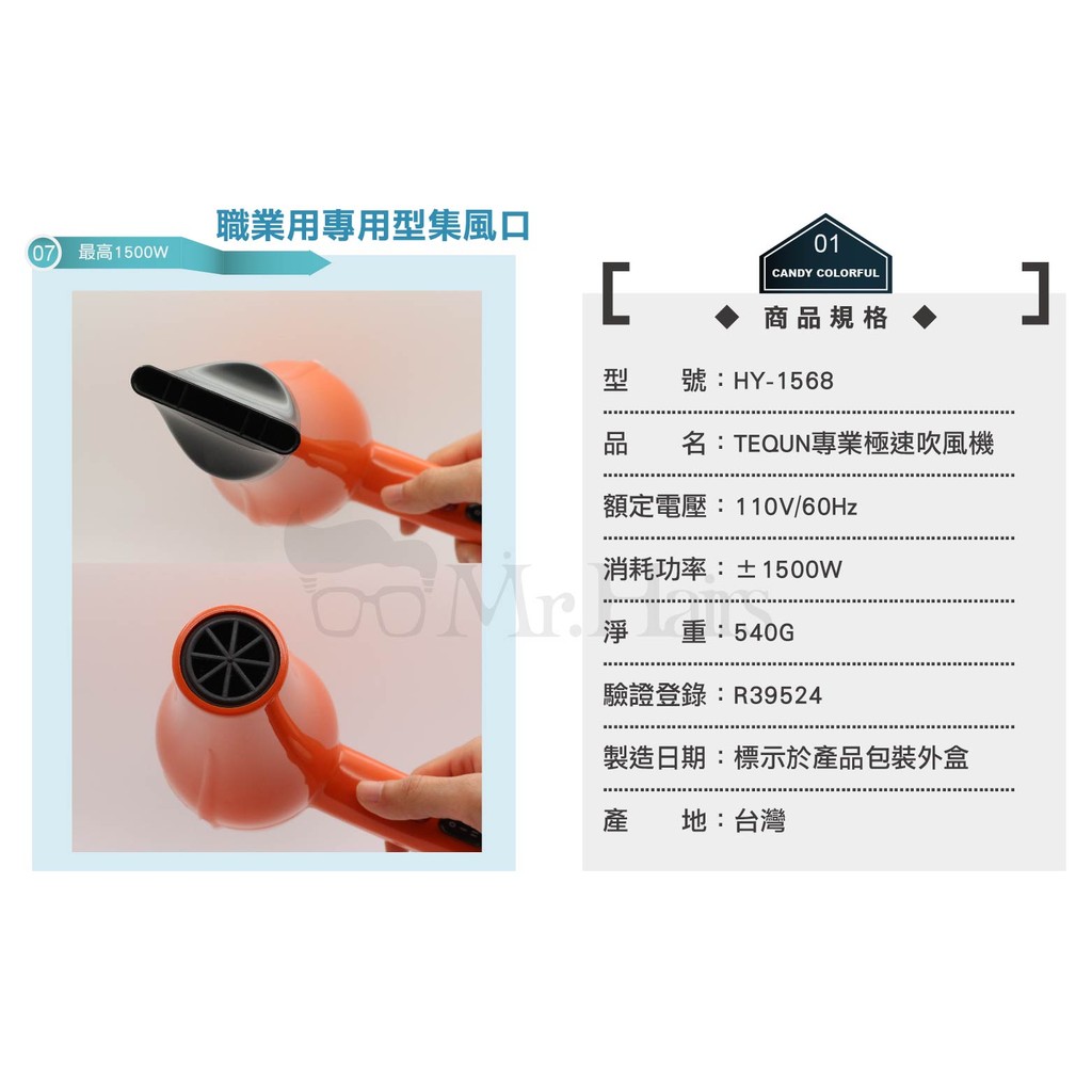 HY1568-TEQUN 專業 吹風機 極速型 設計師推薦 Mr.Hairs 頭髮先生