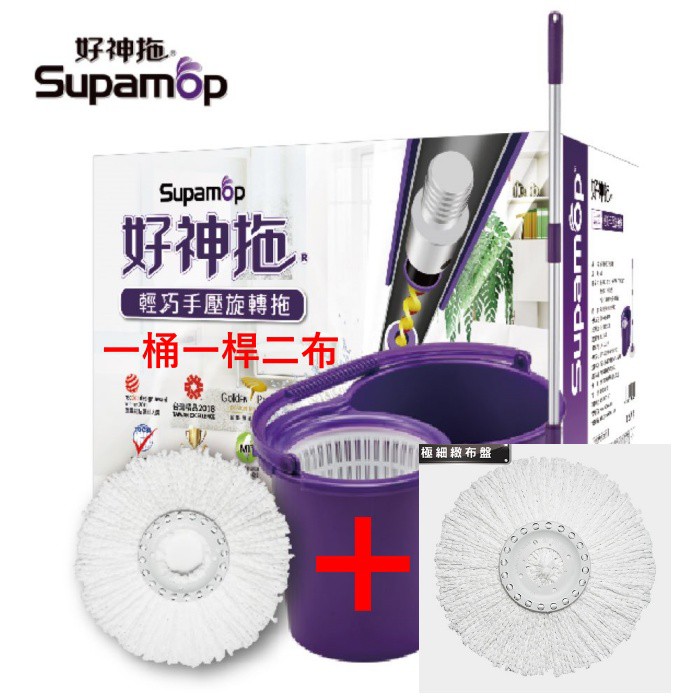 HZ001 好神拖 輕巧手壓旋轉拖把組~~(1桶1拖2布) (經典系列)