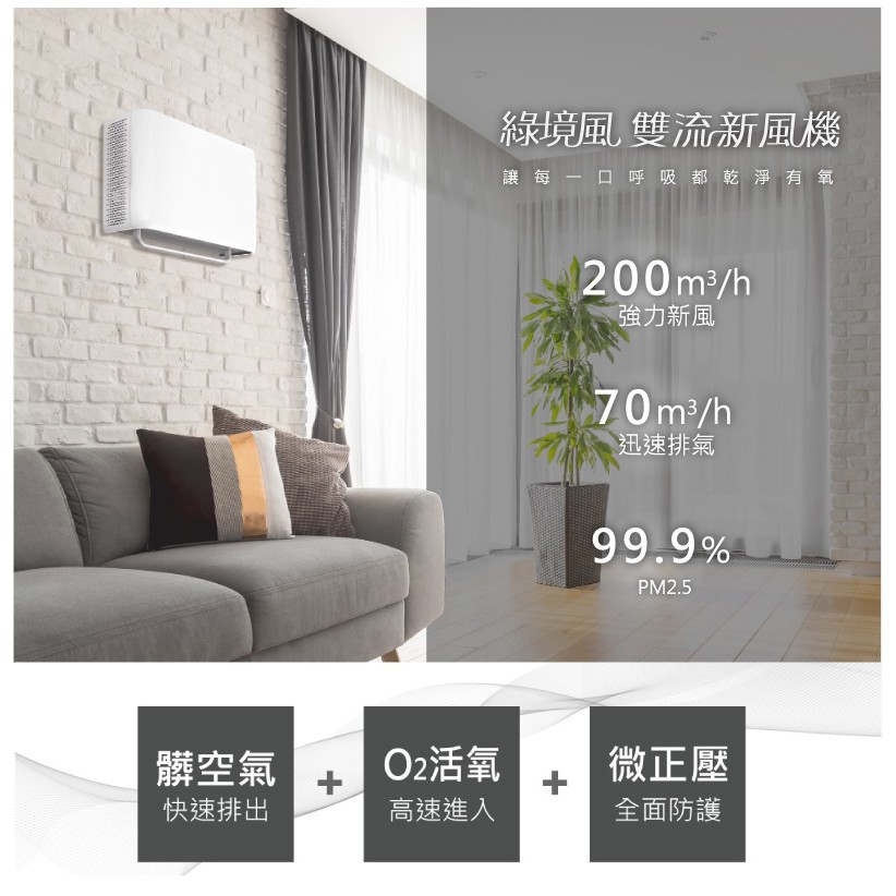 【SUNON】 Flow2one PLUS+ 綠淨風雙流新風機 空氣清淨機 空氣偵測機 大風量 雙渦輪 抽風機 淨化空氣