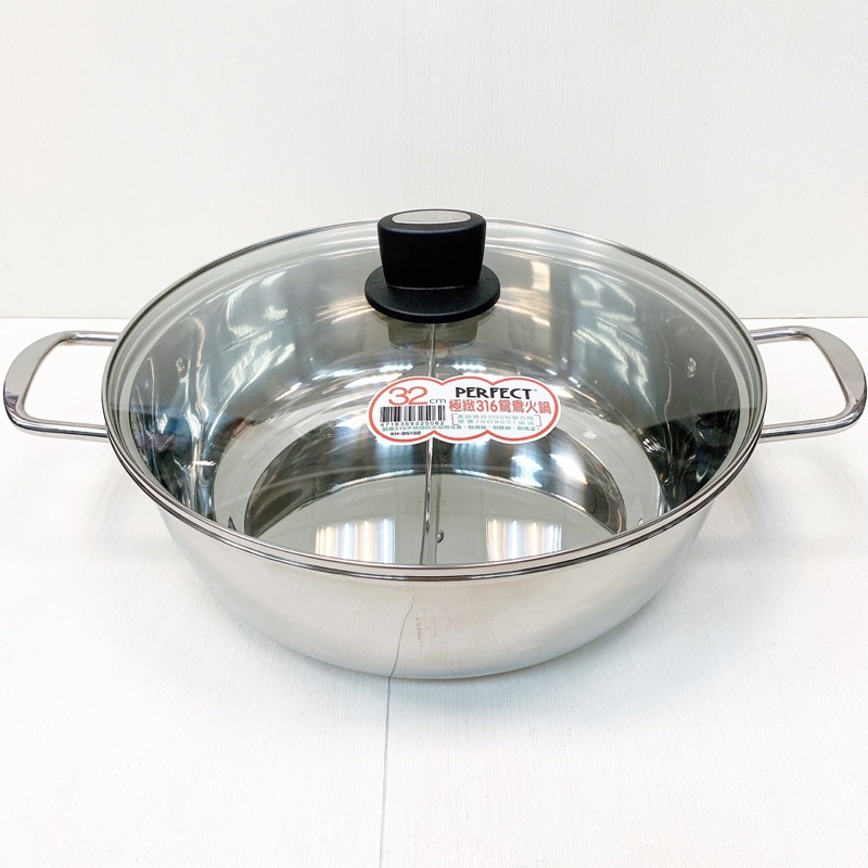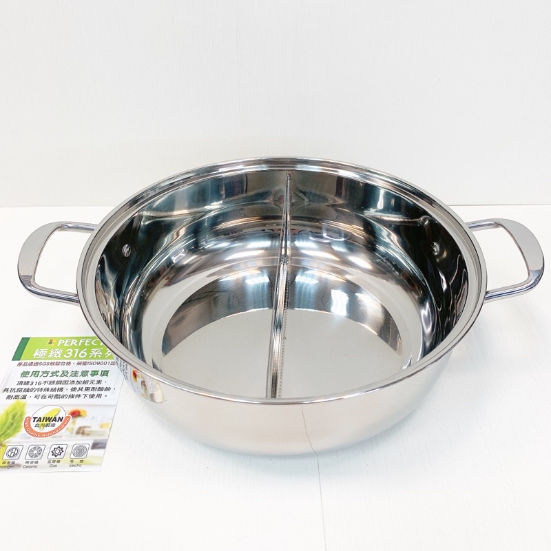 【PERFECT理想】有蝦皮代開發票 可用電磁爐 極緻316不銹鋼鴛鴦火鍋/鴛鴦鍋30CM/32CM KH-35130