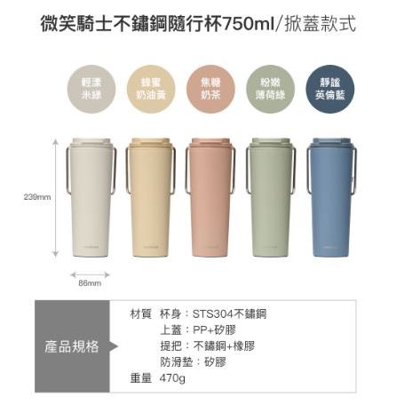 LocknLock 樂扣樂扣 微笑騎士掀蓋隨行杯750ml (隨行杯 冰霸杯 環保杯) (米綠/英倫藍) 米菲寶貝