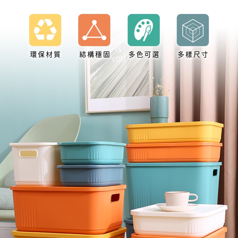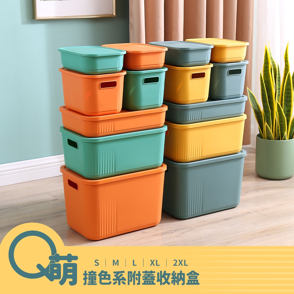 Q萌撞色系收納盒(附蓋) 多款式 (四色可選) 置物盒 書盒 收藏箱 雜物收納 收納箱 可疊加 玩具箱
