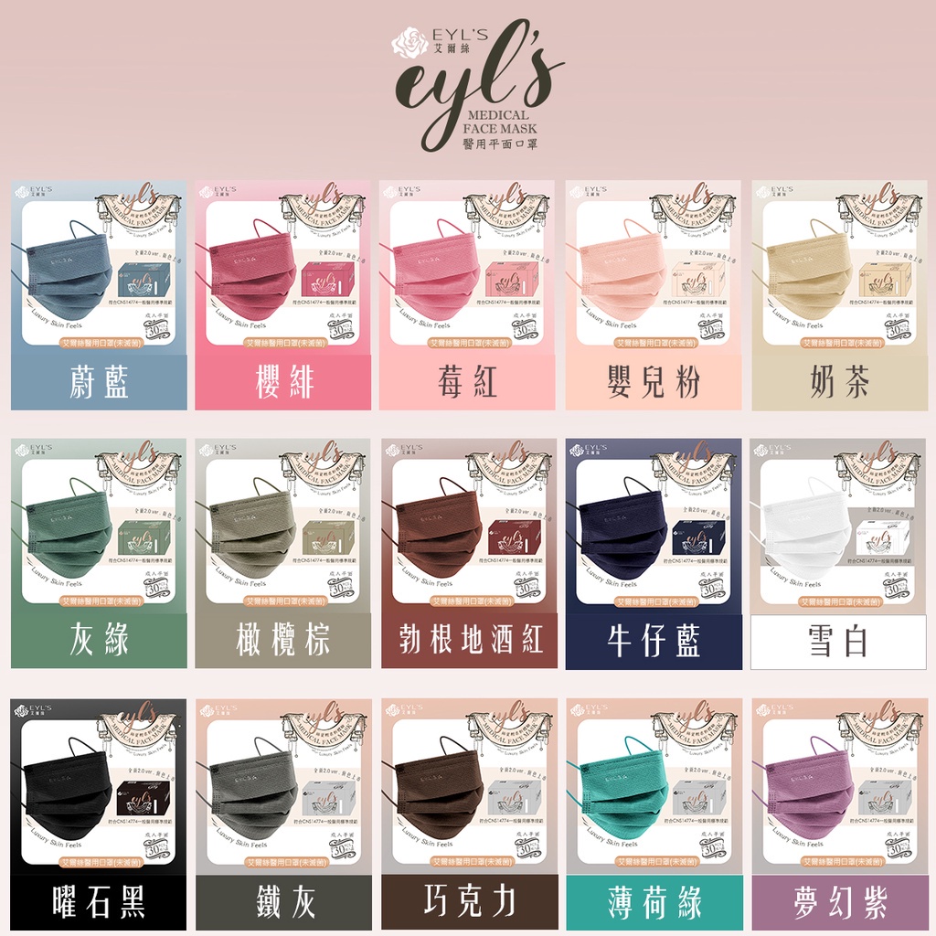 〔艾爾絲〕多款 平面 全彩 滿版 成人 醫療口罩 台灣製 奶茶 橄欖棕 酒紅 非立體 KF94