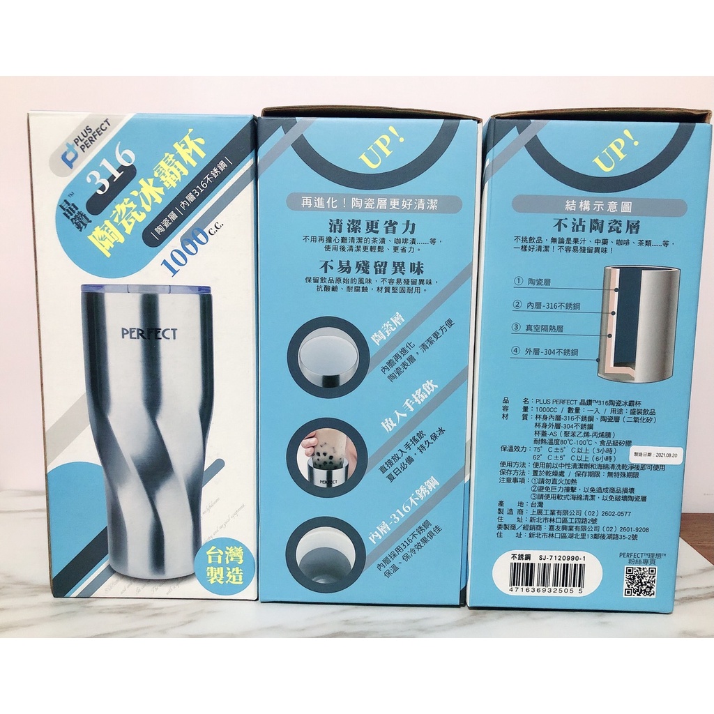 ✿團媽五金百貨✿台灣製 PERFECT 理想 晶鑽316陶瓷冰霸杯 1000ml 保溫杯 冰霸杯 陶瓷 陶瓷杯 杯子