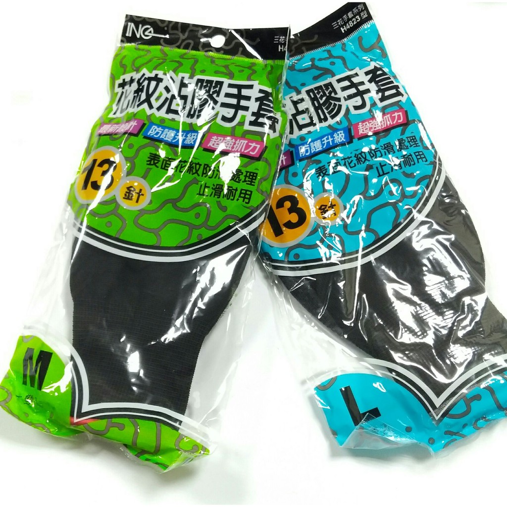 三花 花紋沾膠手套13針 表面花紋防滑 塑膠手套 工作手套 作業手套 沾膠手套 防滑手套 超強抓力 園藝 種花 三花手套