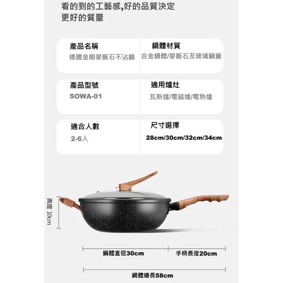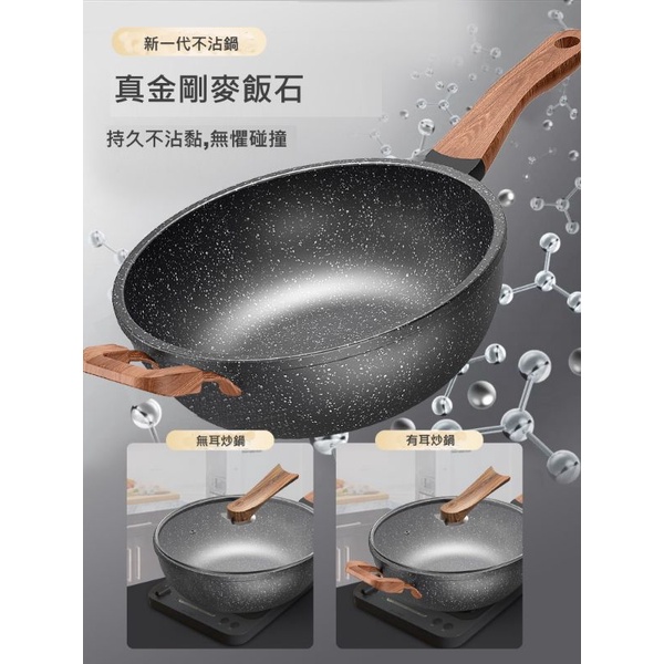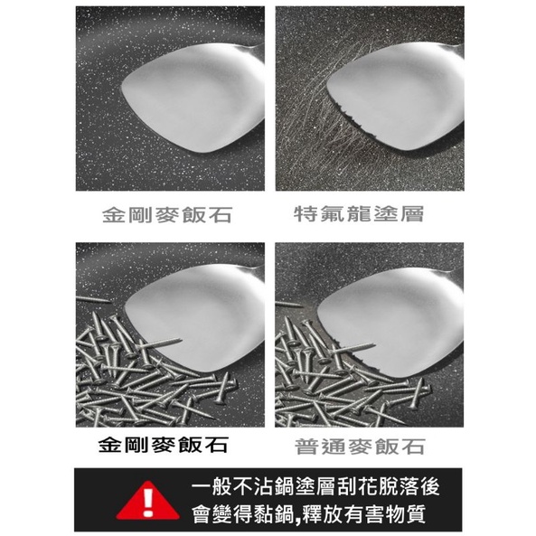 [台灣現貨免運]真金剛麥飯石平底耐磨不沾鍋--德國品質--專為亞洲用戶煎炒耐用設計,贈竹鏟菜瓜布,可用鐵鏟,堅實耐用