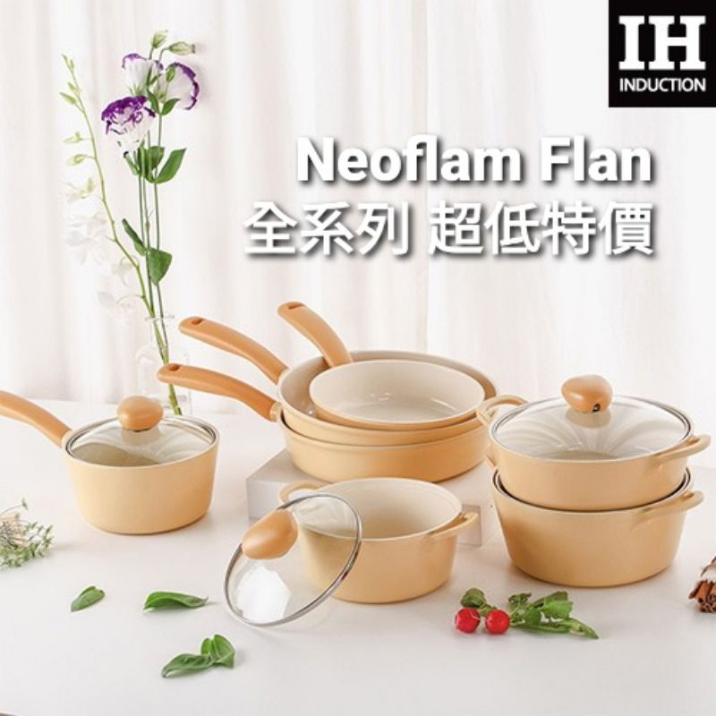 韓國NEOFLAM FLAN全系列 新品上市 粉橘新色 不沾鍋具 不沾平底鍋 雙耳湯鍋 單柄鍋 香草雪酪鍋