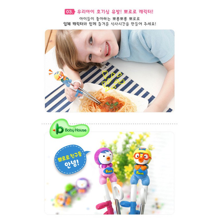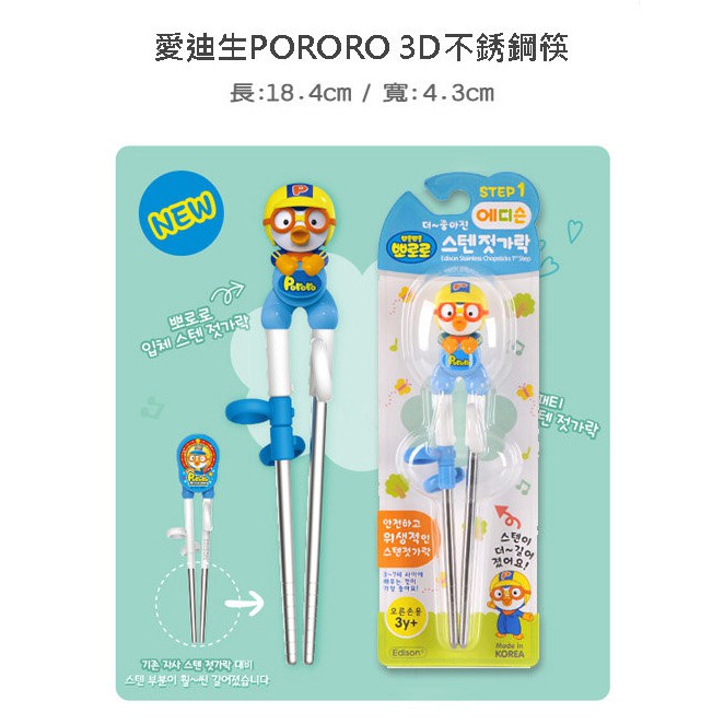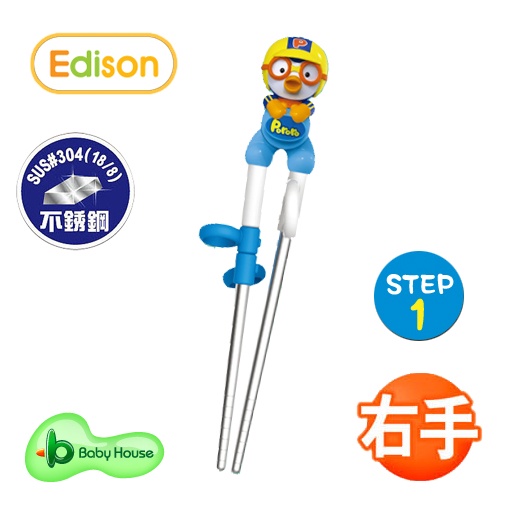 Edison 愛迪生 PORORO 3D不銹鋼學習筷子 第一階段-右手 不鏽鋼 愛兒房BABY HOUSE