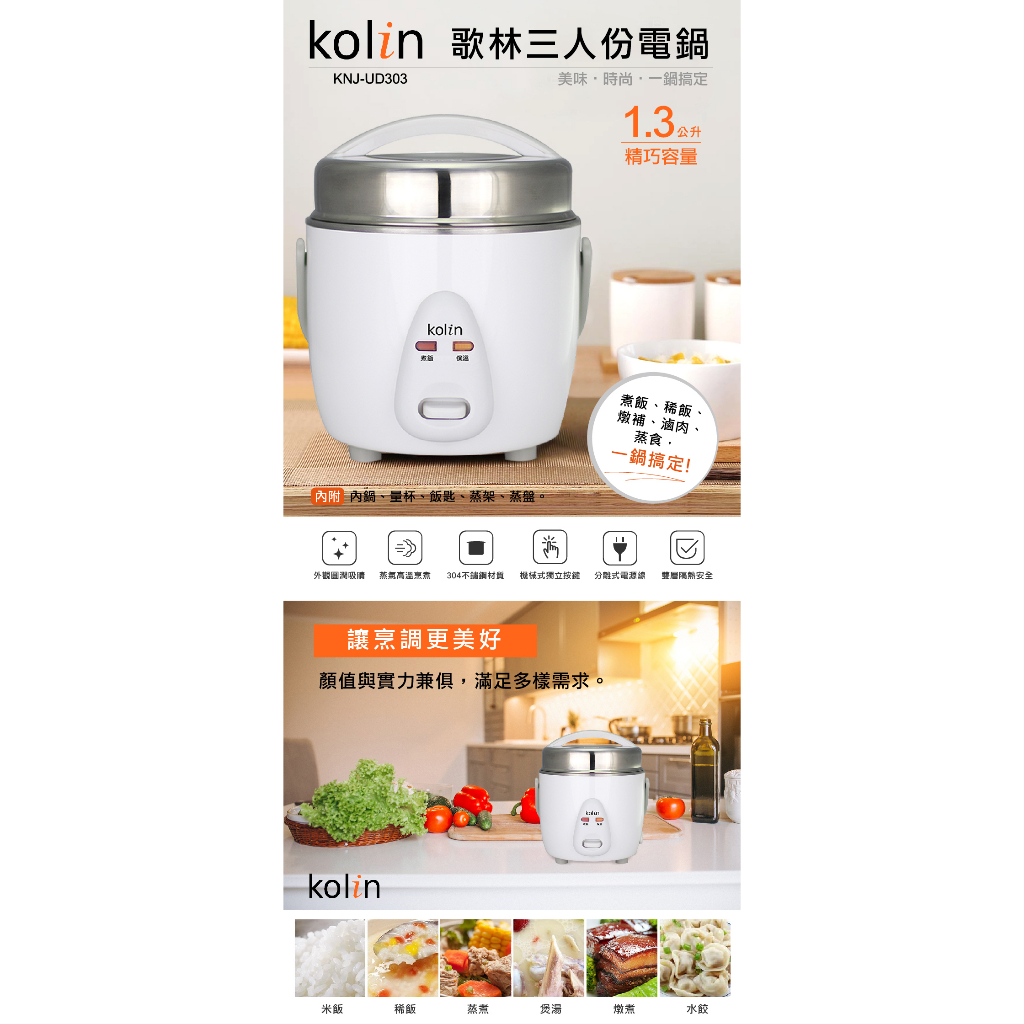 【kolin 歌林】三人份電鍋(KNJ-UD303)|限量福利品