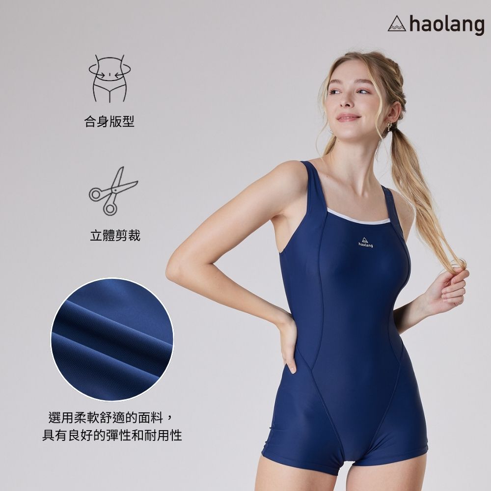 Haolang 莫藍連身四角泳衣/寬肩帶/簡約修身/低阻力/立體打版/高品質