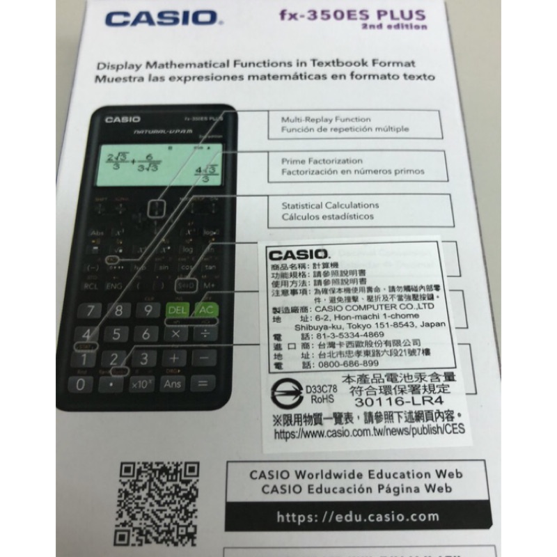 👍上班日出現貨 全新第二代350全新CASIO fx 350ES PLUS II NEW 第二代強效進化版 團購特惠價