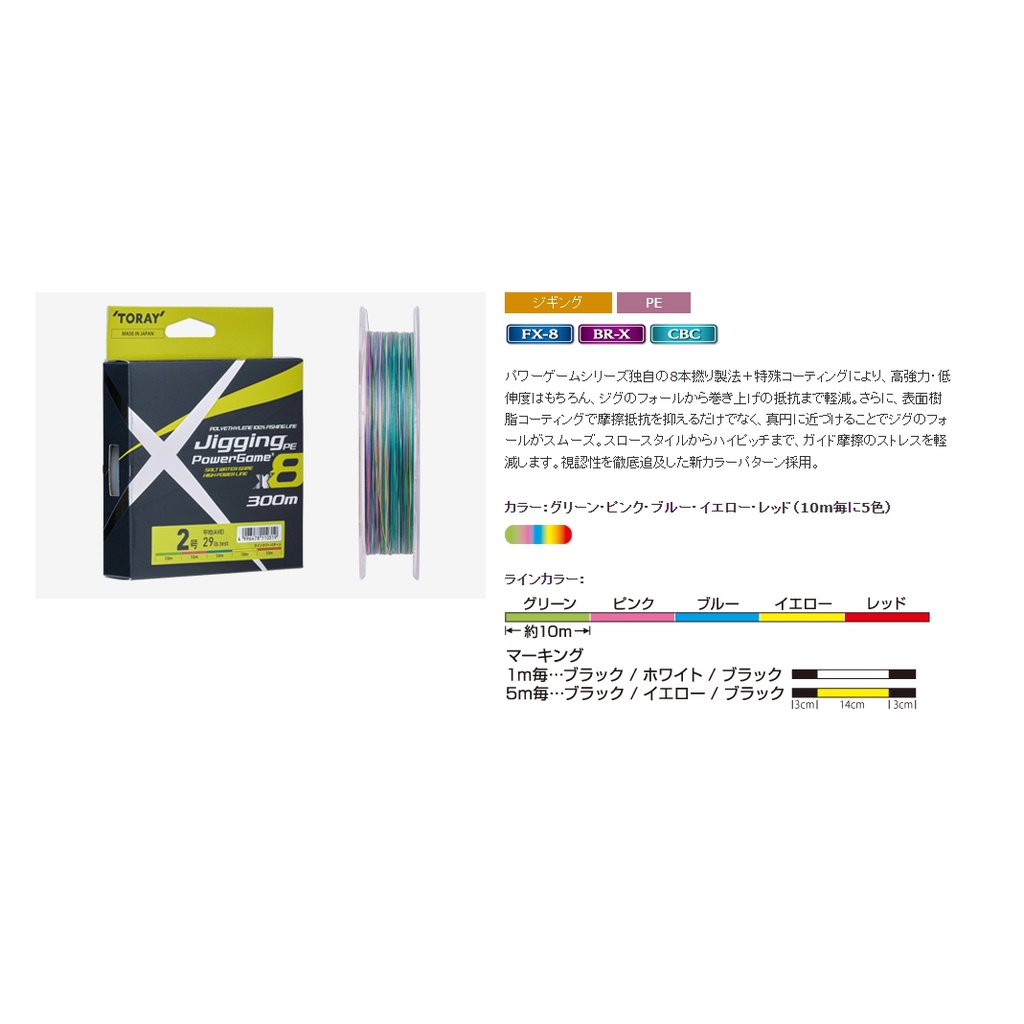 【超群釣具】 TORAY Jigging Power Game X8 300m 五色 PE線 PE母線 五色 PE