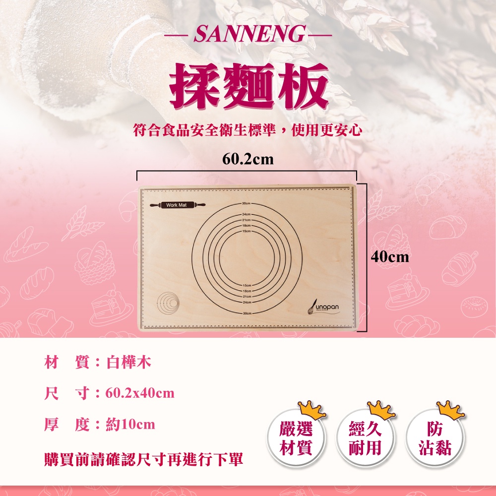 👑PQ Shop👑三能SANNENG 揉麵板 砧板 白樺木 600x400x10mm UN41003