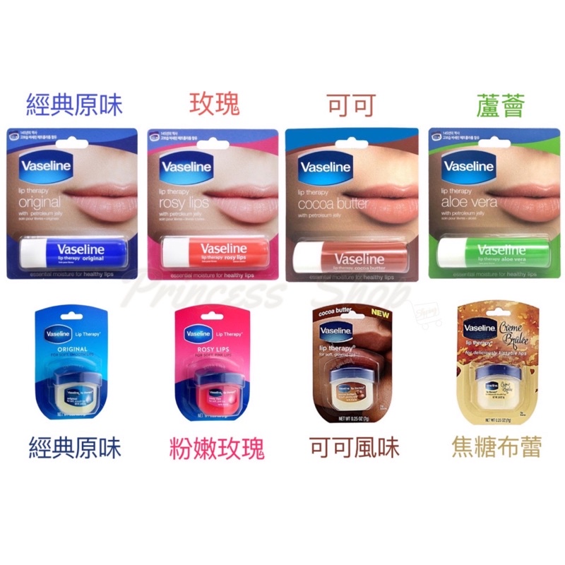【凡士林Vaseline】護唇膏 原味 玫瑰 蘆薈 可可 粉嫩玫瑰 可可風味 焦糖布蕾 條狀/瓶裝【大公主小舖】