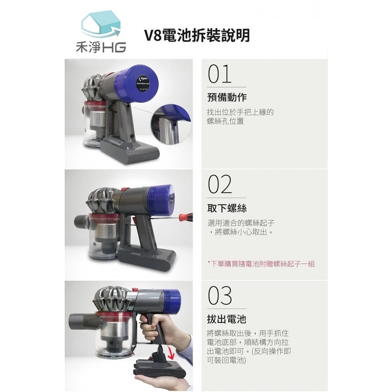 🚚免運🚚【禾淨家用HG】🔋Dyson V8/SV10系列🔋適用 3000mAh副廠鋰電池