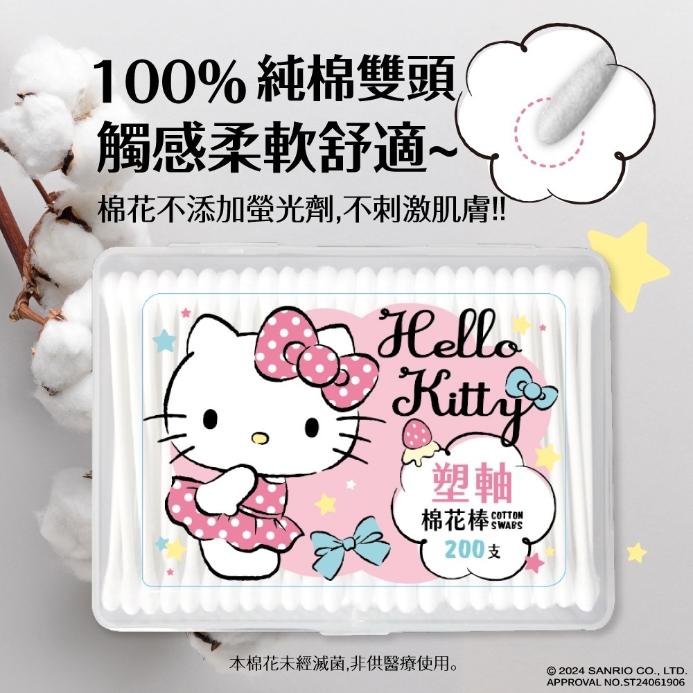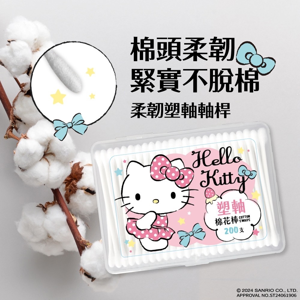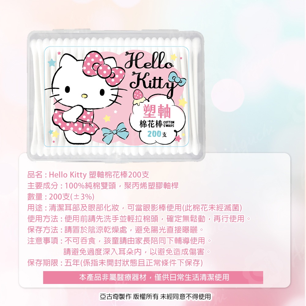 Hello Kitty 凱蒂貓塑軸棉花棒200支(盒裝) 高韌性塑膠軸桿不含螢光劑