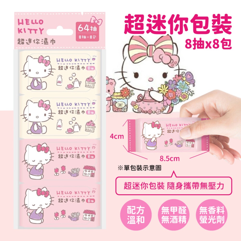 Hello Kitty 超迷你濕紙巾8抽x8包入 濕紙巾 口袋隨身包