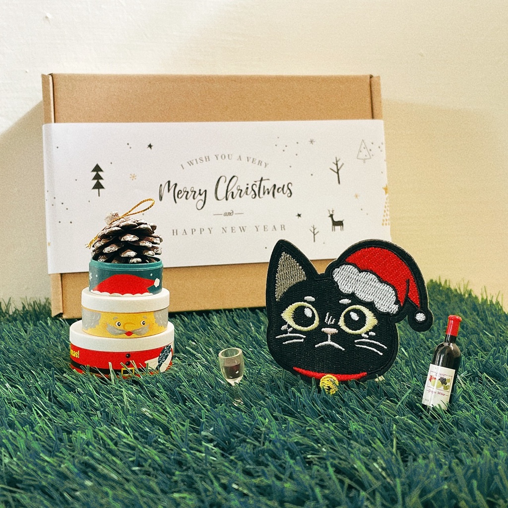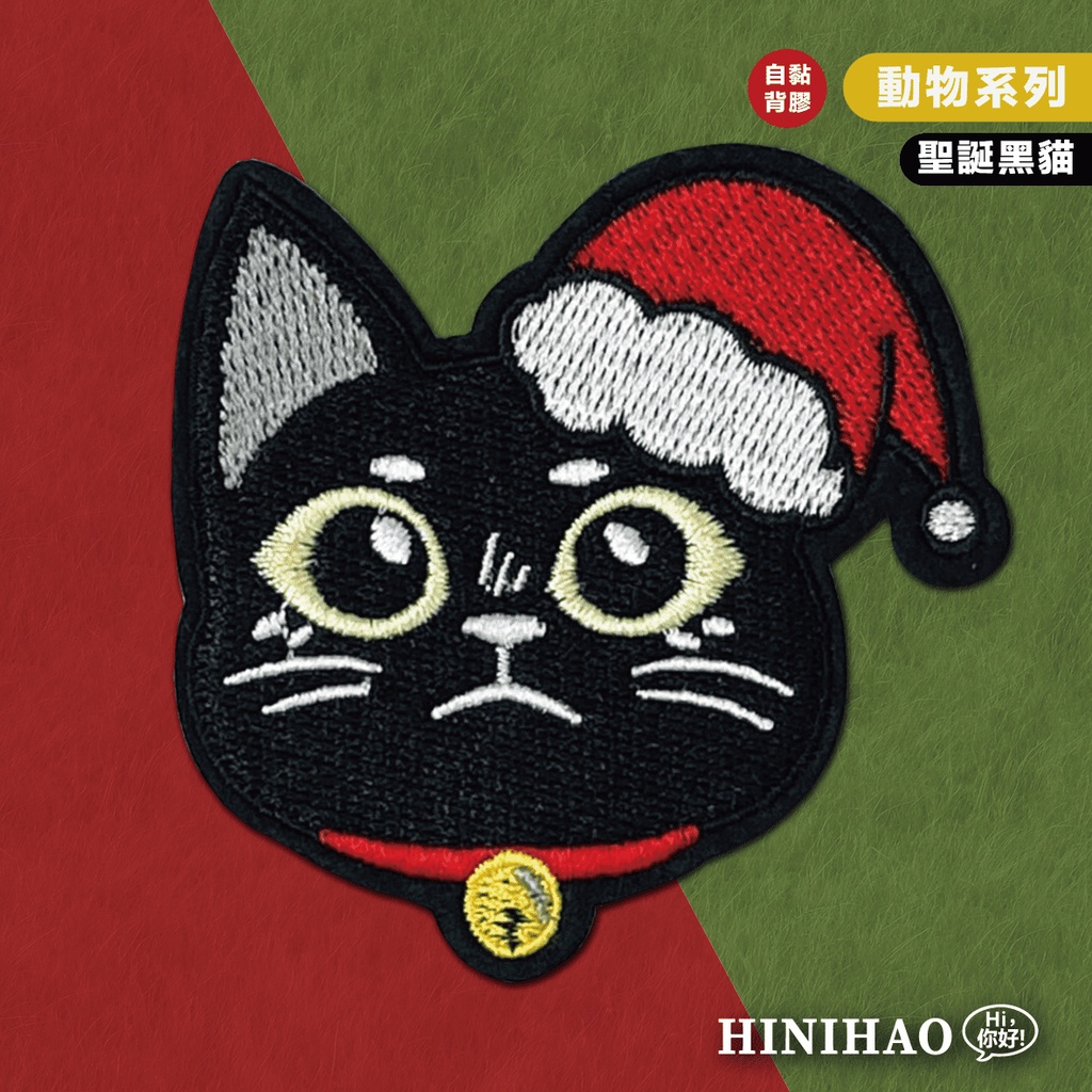 Hi你好|聖誕黑貓原創設計刺繡貼紙聖誕貼紙貓貓貼紙行李箱貼紙手機殼貼紙刺繡布貼布貼