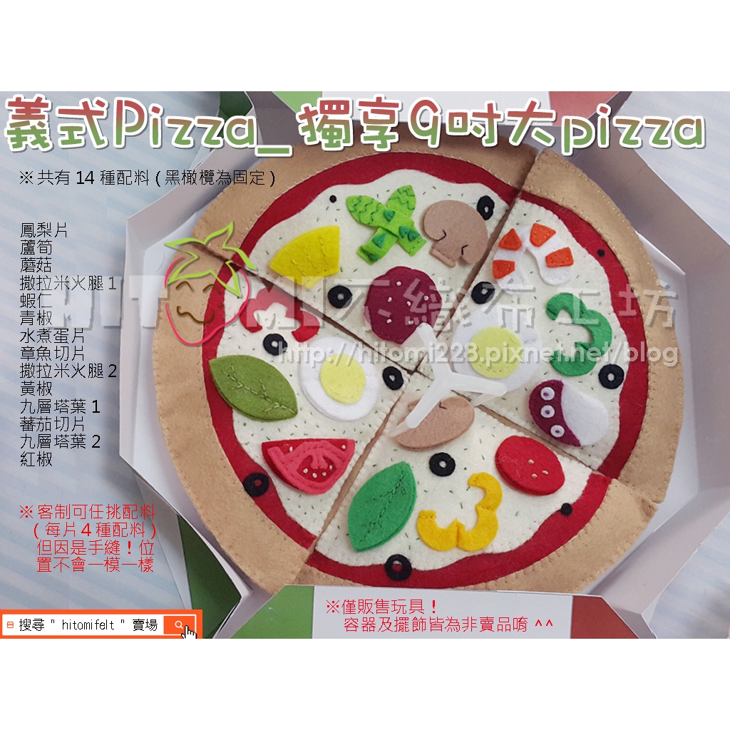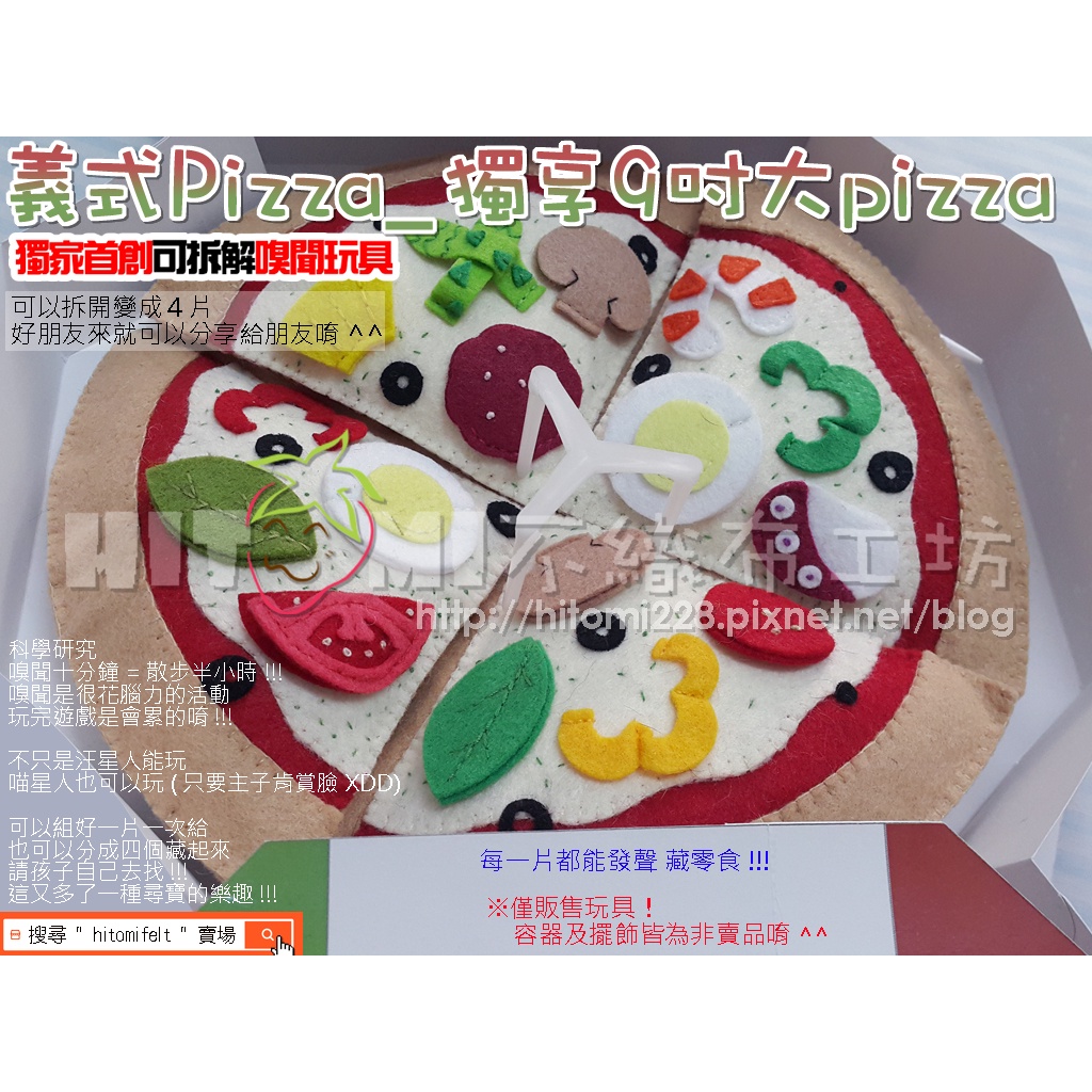 Hitomi不織布工坊☆不織布汪喵玩具-義式Pizza全家餐_嗅聞舒壓玩具