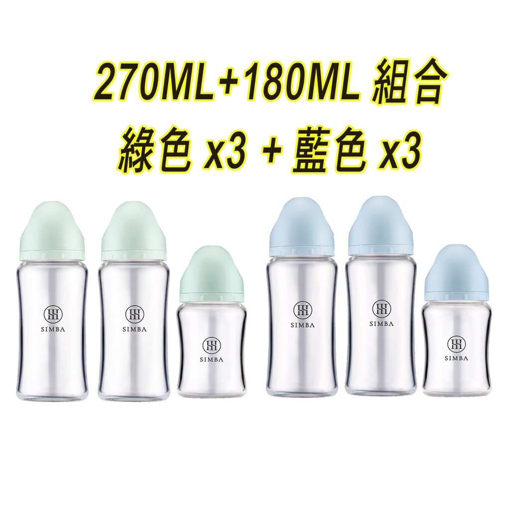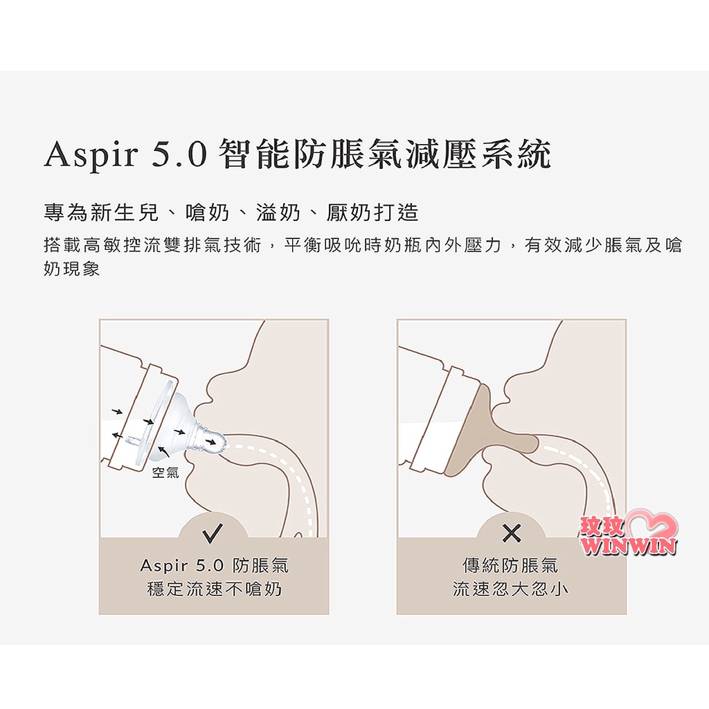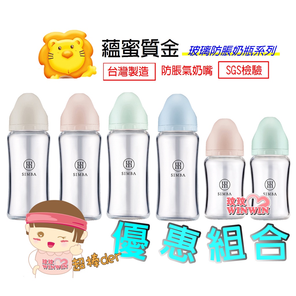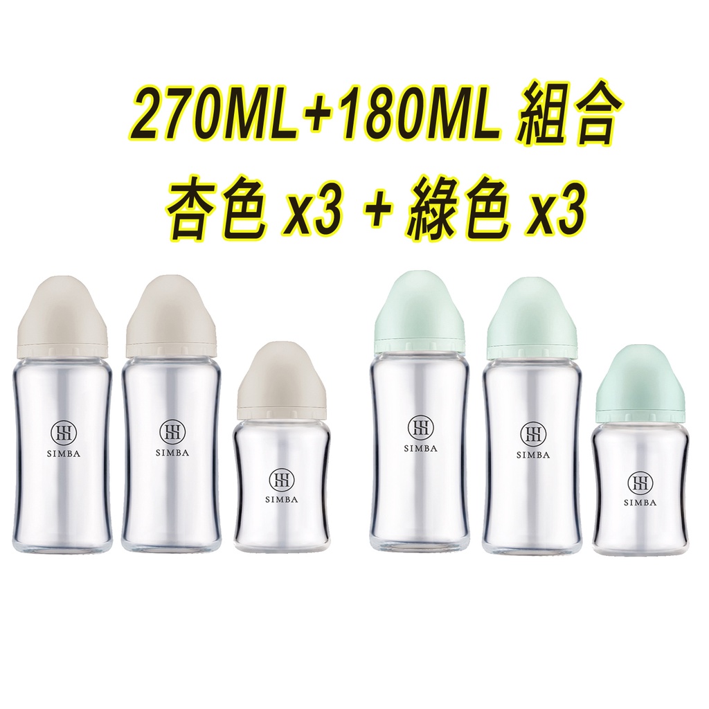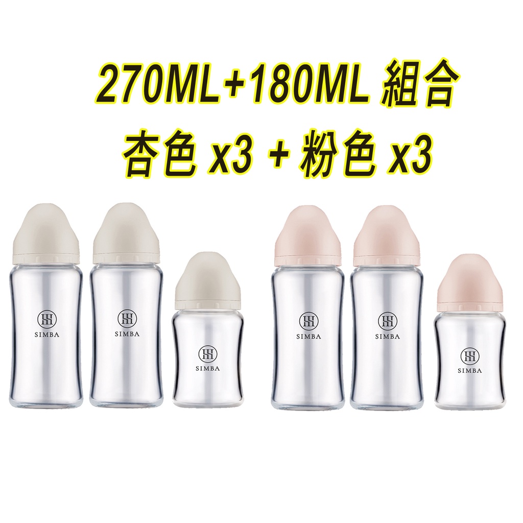 Simba小獅王辛巴蘊蜜質金玻璃寬口防脹氣奶瓶270MLx4支+180MLx2支,Aspir 5.0智能防脹氣減壓系統