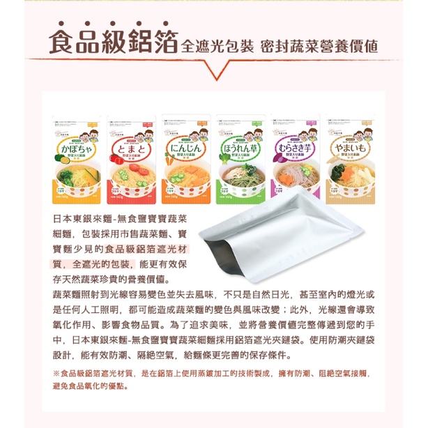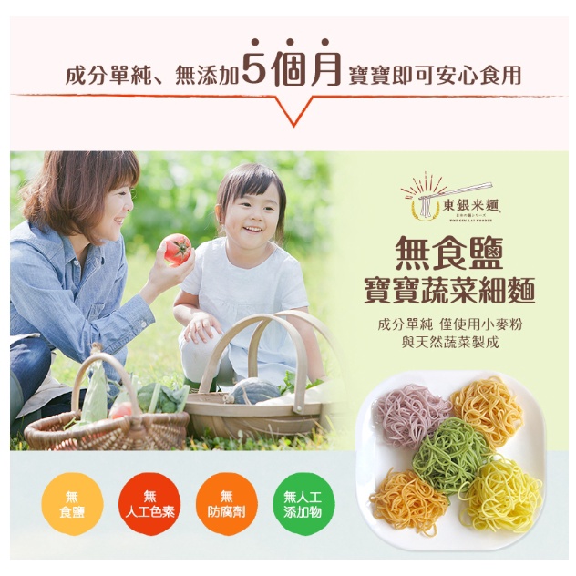 瘋狂寶寶**日本東銀來麵 無食鹽寶寶蔬菜細麵(番茄/南瓜/菠菜/紫薯/山藥/胡蘿蔔)